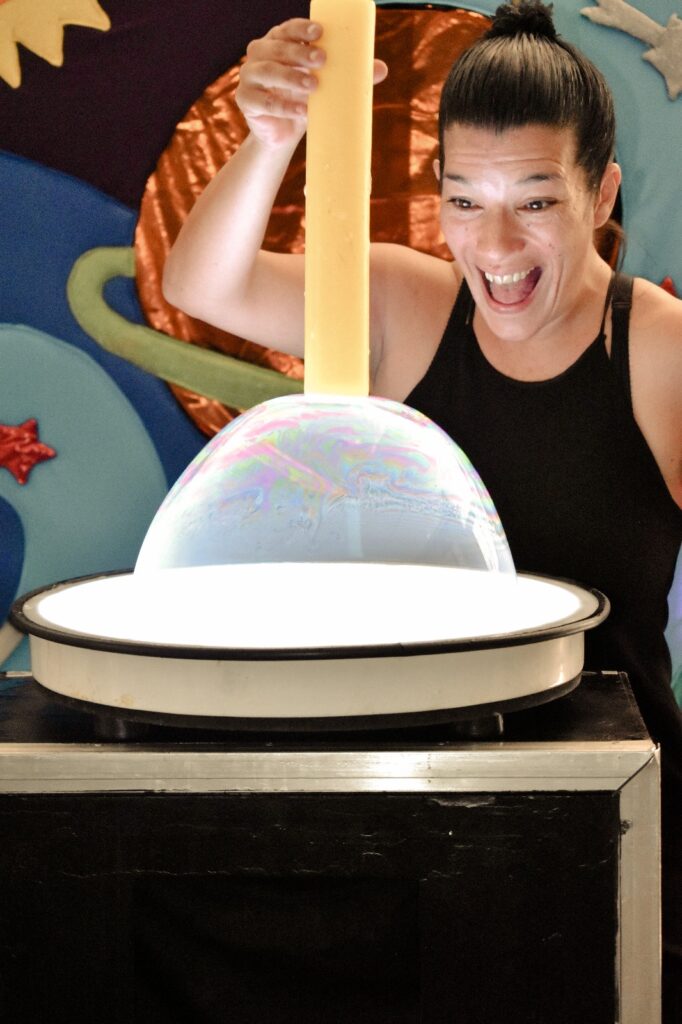 Uno de los momentos más divertidos que hemos creado son nuestras competencias de burbujas gigantes. ¡Una experiencia inolvidable!